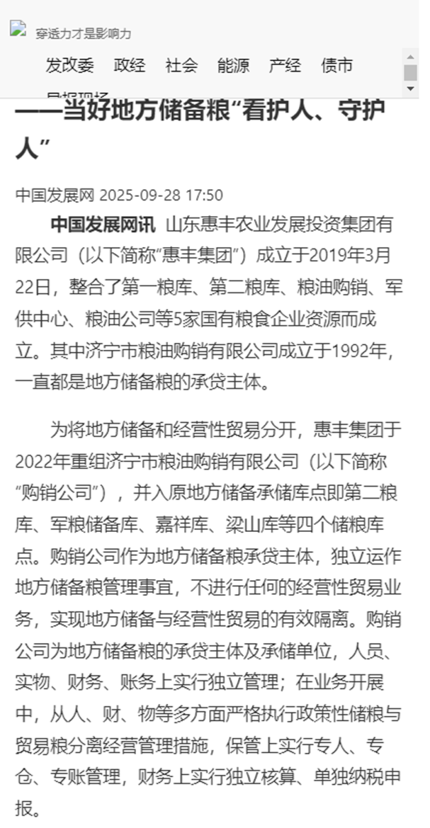 中国发展网 |“粮食安全看山东”之济宁:惠丰集团——当好地方储备粮“看护人、守护人”
